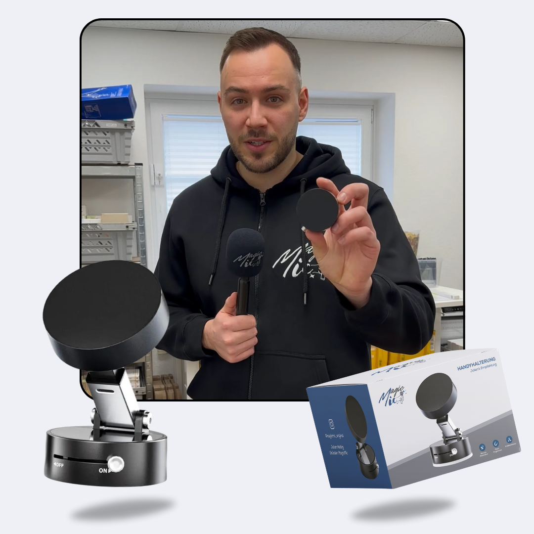 Erlebe maximale Flexibilität mit der MagicMic™ Handyhalterung und optimiere deine Content Creation. Ob Smartphone, Tablet oder andere magnetische Geräte, alles bleibt sicher und stabil. Ideal für Vlogs, Livestreams oder kreative Videoaufnahmen, ohne störendes Verrutschen deines Equipments.