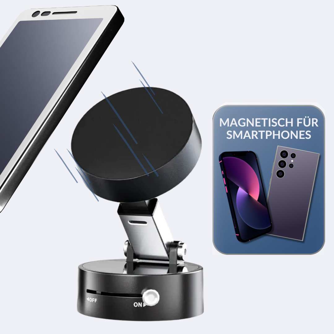 Die Vakuumtechnik sorgt für eine zuverlässige und sichere Haftung besonders auf glatten Oberflächen, ohne das Risiko, dass das Smartphone während der Nutzung abrutscht.
