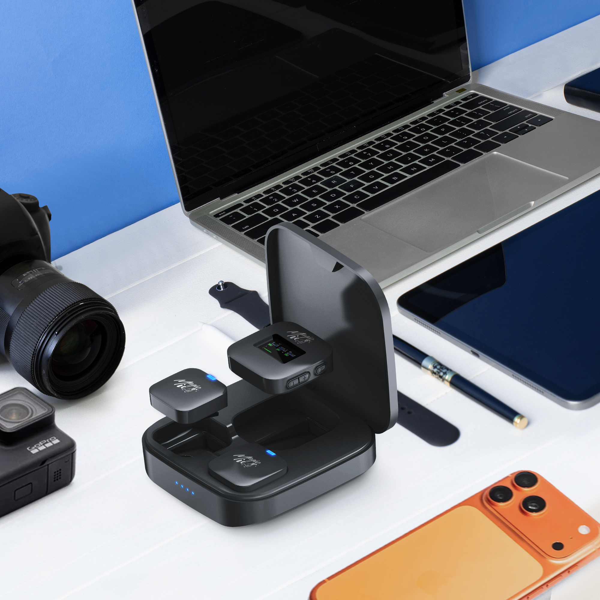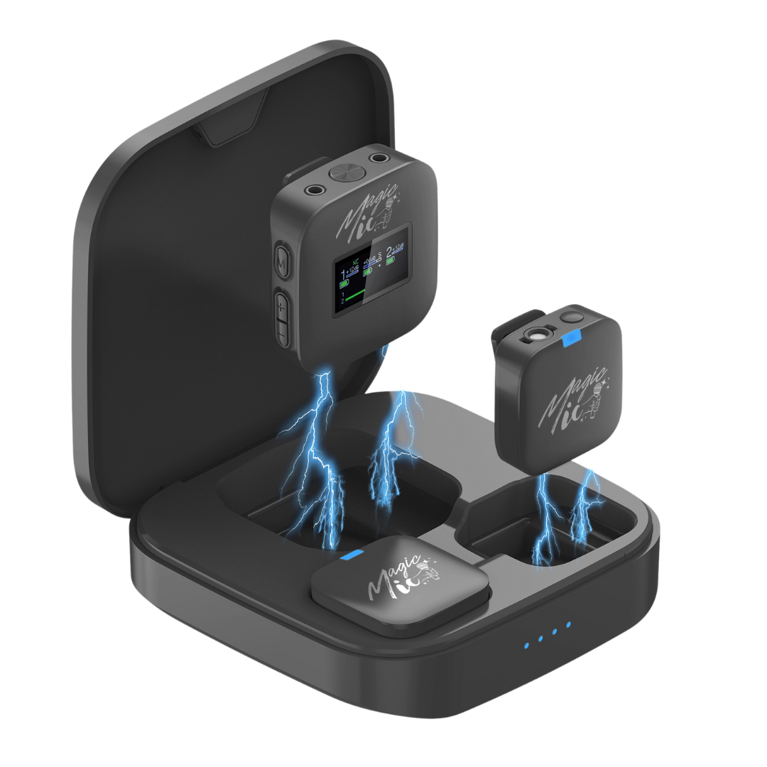 Ob zu Hause oder unterwegs, das MagicMic™ 3 Pro liefert klaren, professionellen Sound in jeder Umgebung. Die verbesserte 2,4 GHz-Verbindung sorgt für stabile Übertragung bis 150 Meter, ideal für Interviews, Podcasts oder Vlogs. Mikrofone und Empfänger koppeln sich automatisch und sind sofort einsatzbereit. Mit Windschutz und Lautstärkeregelung am Empfänger bleibt dein Ton überall klar und ausgewogen. Dank längerer Akkulaufzeit und kompaktem Design mit integriertem Magnet bist du jederzeit flexibel und bereit für jede Aufnahme.